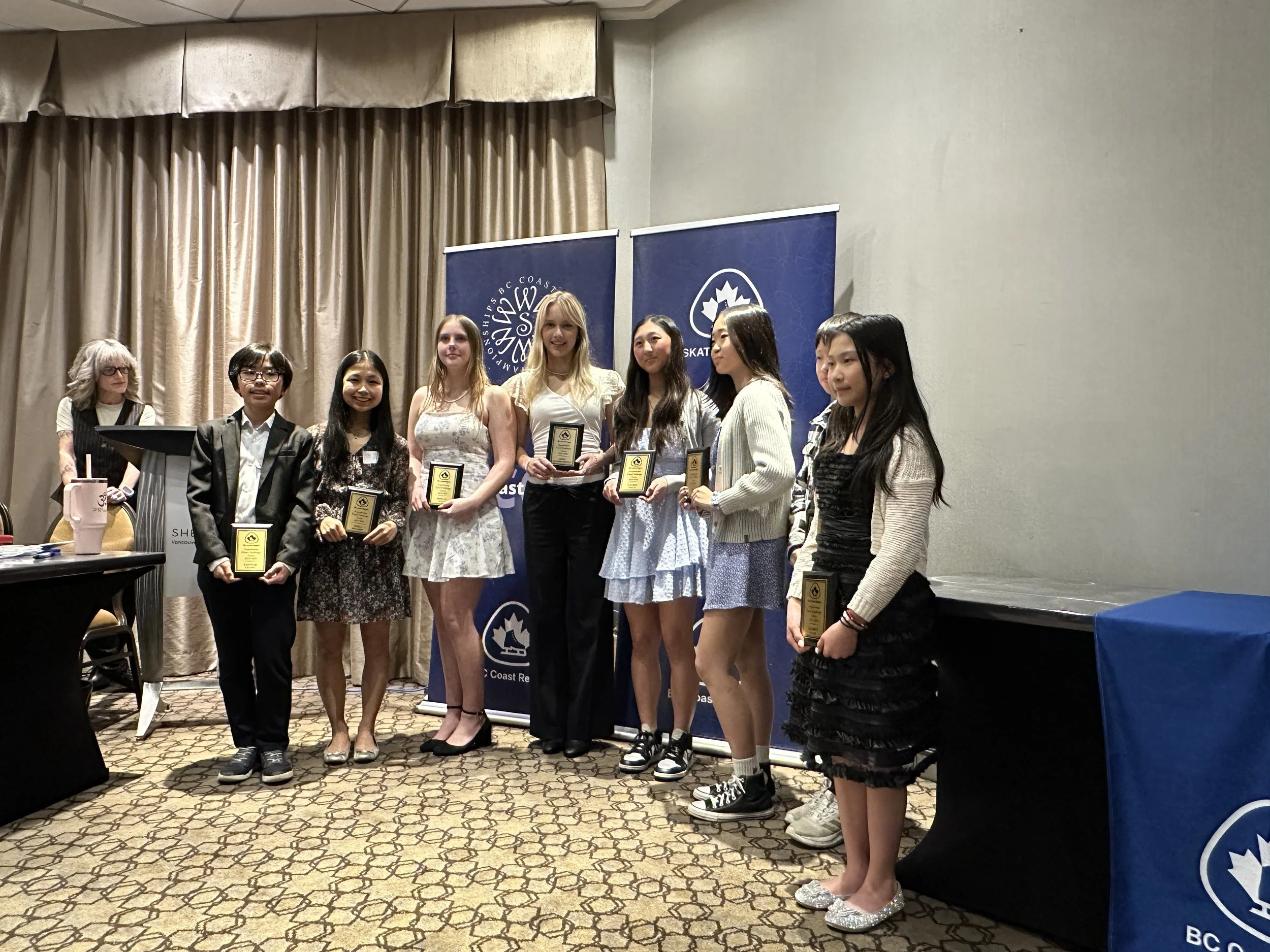 The BC Coast Region AGM and Awards Night was held this year at the Sheraton Guildford Hotel in Surrey, on Tuesday April 8. Club presidents, volunteers, award recipients and their families gathered before the meeting to socialize and celebrate all our achievements over the past skating season.